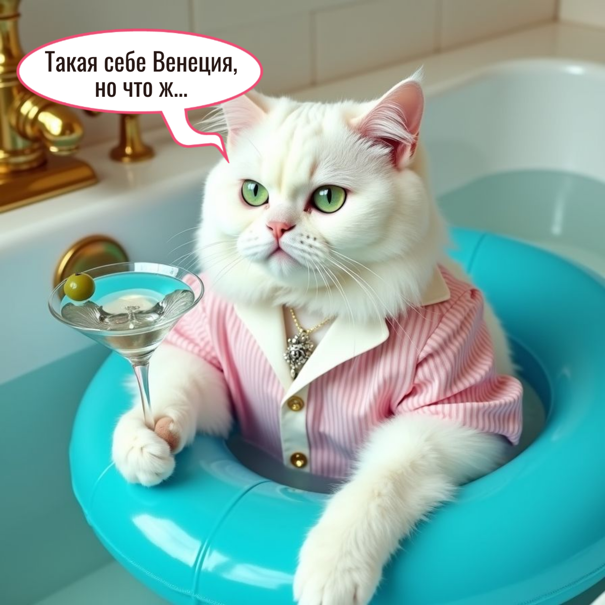 Сегодня, оказывается, Всемирный день вермута! И Котик Бух, как истинный ценитель всего, что можно выпить, решил отметить его по всем правилам. После второго бокала воображение разыгралось не на шутку, ведь Котику много не надо. Он уже слышал плеск воды, крики чаек и напевы гондольера. И тут меня осенило: "Нужно это воссоздать!" В общем, Венецию Котик Бух так и не воссоздал. Но соседи, похоже, теперь уверены, что у них живет сумасшедший итальянский усатый котяра. А я? Я просто отмечал Всемирный день вермута! P.S. Может, кто-нибудь знает, как правильно управлять надувной гондолой в условиях малогабаритной квартиры? И как объяснить соседям, что я не сошел с ума, а просто очень люблю вермут? Помогите советом!
