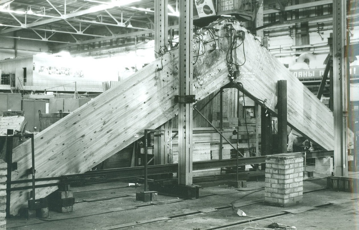 Самым нагруженным узлом в таких конструкциях будет именно карнизный узел, в нашей практике изгибающий момент в таких узлах доходил до 80 тм. Если говорить про деревянные конструкции, то строительная практика насчитывает большое количество решений для его реализации - это и накладки, и расположение нагелей по кругу, и зубчатые шипы и еще многие другие способы.