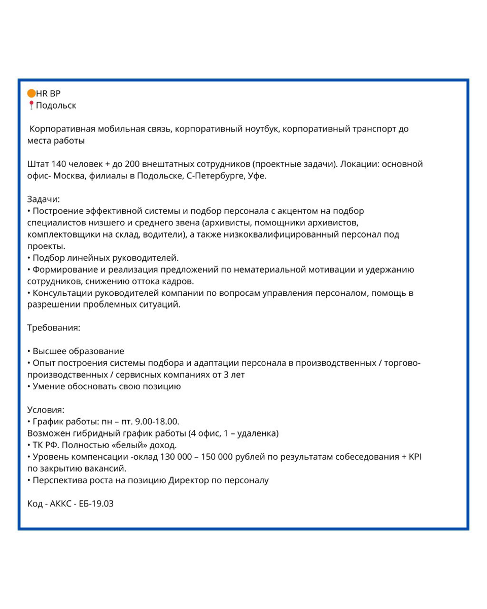 📍Московская область г. Щелково, зп 120 000.