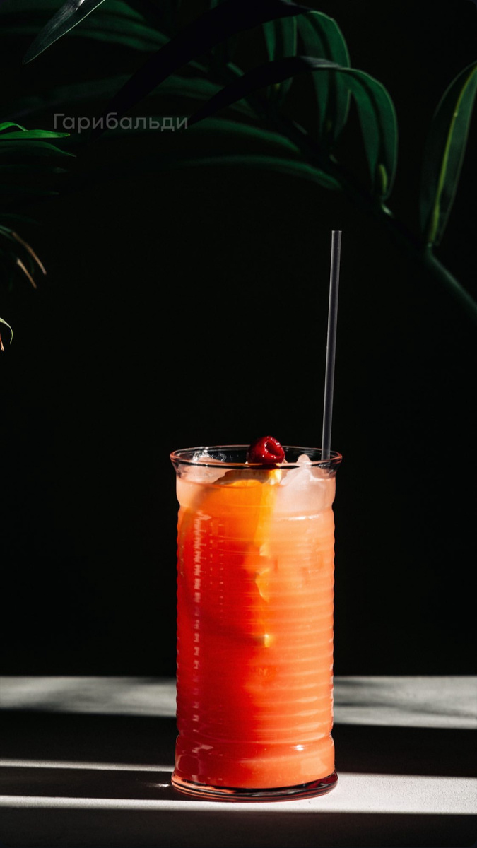 История Коктейль «Гарибальди» — яркий пример современной классики, созданной в Италии. Он был придуман в 2018 году талантливым барменом Мирко Фалари в римском баре Notorious. Название напитка отсылает к национальному герою Италии Джузеппе Гарибальди, объединителю страны, а также к его любви к апельсинам (по легенде, он выращивал их на острове Капрера). Однако главная отсылка — цвет коктейля, напоминающий красные рубашки гарибальдийцев. Созданный как дань итальянским традициям, коктейль быстро завоевал популярность благодаря простоте и балансу вкусов. В 2020 году он вошел в официальный список IBA (International Bartenders Association), что подтвердило его статус международного хитового напитка. Состав (на 1 порцию): - Campari — 40 мл (итальянский биттер с горько-апельсиновым вкусом); - Свежевыжатый апельсиновый сок — 120 мл - Лед— 200 г (кубики или дробленый); - Долька апельсина — для украшения. Способ приготовления: 1. Наполните бокал хайбол льдом до краев. 2. Влейте Campa