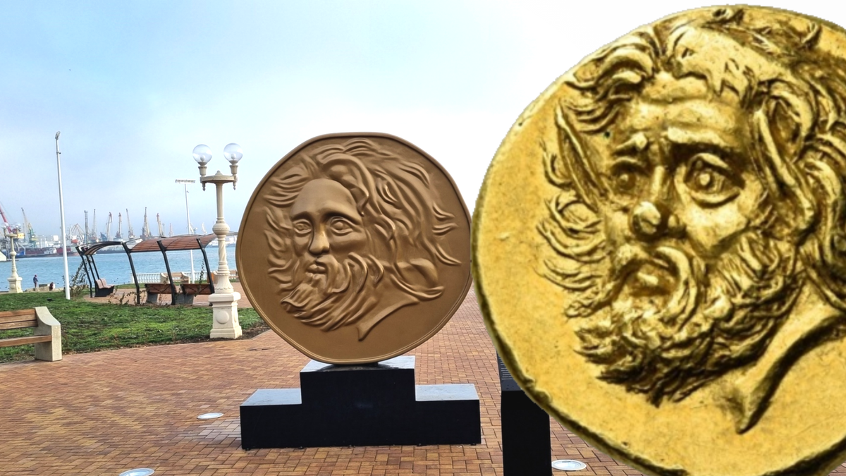 На бывшем рынке столицы Боспорской империи теперь стоит Владимир Ильич Ленин. А напротив него — желтоликий муж с прической Робинзона Крузо. То ли это памятник сделке, благодаря которой статер из Пантикапея уже два года — самая дорогая древняя монета в мире. То ли — монумент неизвестному гению, задолго до да Винчи решившему трудную «проблему выхода из профиля в фас».