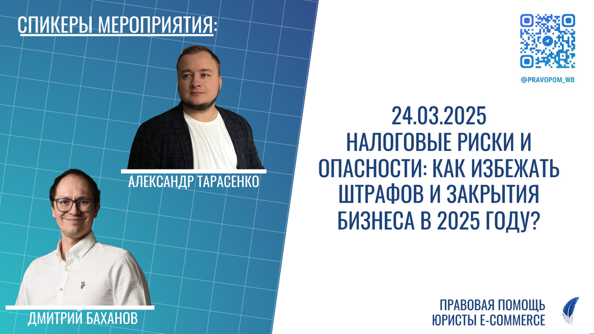 В понедельник (24 марта) на нашем канале будет проведен совместный эфир с Бахановым Дмитрием (https://t.me/yurist_Wildberries_wb_ozon), управляющим партнёром компании Юридическая Инициатива! Не пропустите Ведущий эксперт, который недавно побывал в налоговой Удмуртии и участвовал в форуме по налоговой миграции и легализации доходов, поделится своими знаниями и практическими рекомендациями. Темы эфира: 1️⃣ Налоговая миграция. Как минимизировать риски и что делать в текущих условиях? Получите практические советы, подготовьтесь к допросу у налогового инспектора и узнайте, какие документы должны быть в вашем арсенале, чтобы свести риски доначислений к минимуму. 2️⃣ Новые риски для селлеров. Легализация средств, полученных незаконным путем. Всё, что связано с карго поставками, попадает в зону риска. Обсудим, как с этим бороться, какие шаги предпринять и чего ожидать. 3️⃣ Честный знак и сертификация товара. Тренды на 2025 год: обеление бизнеса и что важно учитывать в ближайшем будущем. 4️⃣ Пр