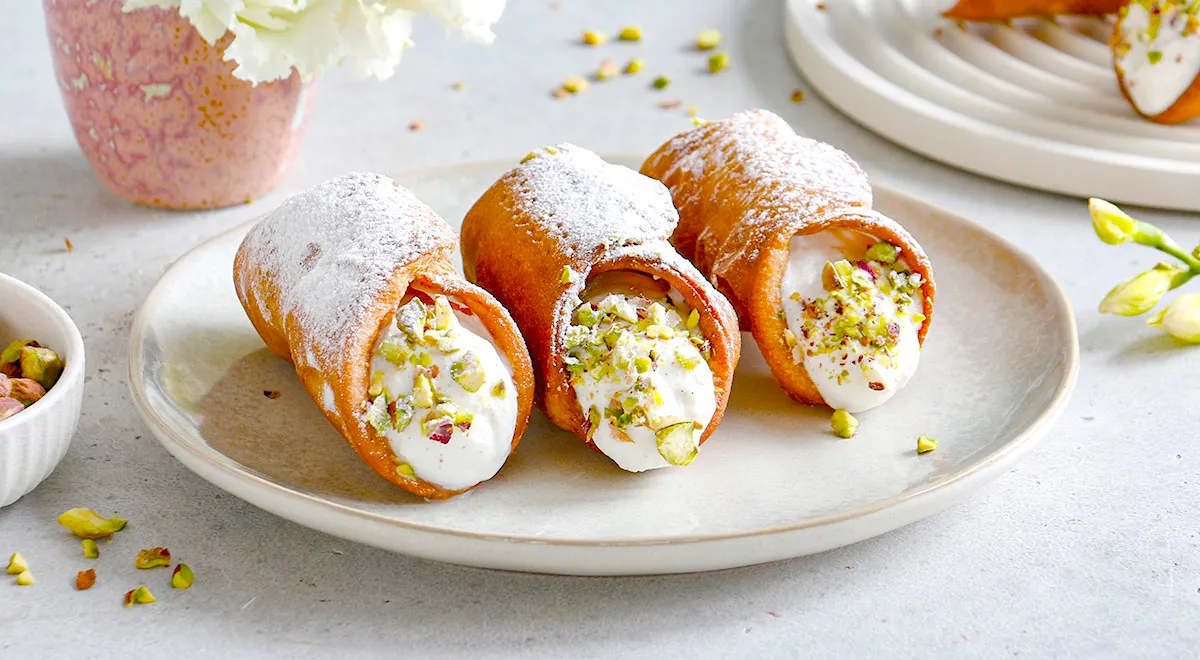 Канноли – традиционный итальянский десерт, родом из Сицилии. Эти хрустящие трубочки из тонкого теста наполнены воздушной рикоттой с сахаром и ванилью, а также могут дополняться шоколадом, цукатами или орехами. Канноли – идеальное угощение к чашке кофе или чая.