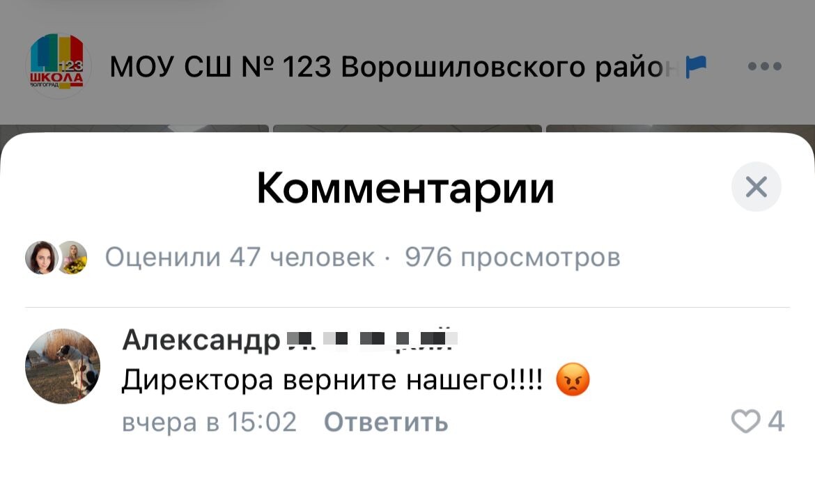 Родители учеников с помпой открытой 1 сентября 2023 года школы №123 пожаловались на внезапное увольнение директора Михаила Полянского. По словам читателей «Блокнота», об увольнении Михаила Васильевича стало известно 19 марта. Эта информация вызывала настоящую волну возмущения. — Родители и ученики возмущены фактом такого произвола и требуют восстановления директора в должности. Есть основания полагать, что директор был вынужден написать заявление об уходе по собственному желанию под давлением вышестоящего руководства. Считаю это решение необоснованным. Фактически администрация Волгограда уничтожает одну из лучших школ своего города с уникальной педагогической системой, созданную в нашей школе именно Михаилом Васильевичем по принципу полезного взаимодействия старших и младших школьников, воспитательную систему семейного типа. Несмотря на то, что нашей школе еще нет и двух лет, в ней уже сочетаются традиции и инновации. Для детей постоянно проводятся разного рода мероприятия, детям очень