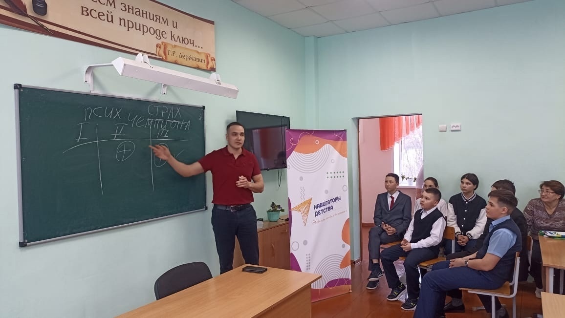 В Каранской школе состоялась встреча с выпускником, чемпионом мира Айваром Гафуровым. Мастер спорта России международного класса, 3-кратный Чемпион России, Чемпион Европы, 4-кратный победитель Кубка Мира, бронзовый призер Чемпионата Мира по кикбоксингу Айвар Гафуров провёл вдохновляющий урок — "Психология чемпиона". Это было не просто занятие по спорту, а настоящая мастерская по развитию ментальных навыков, необходимых для достижения успеха в любом деле.