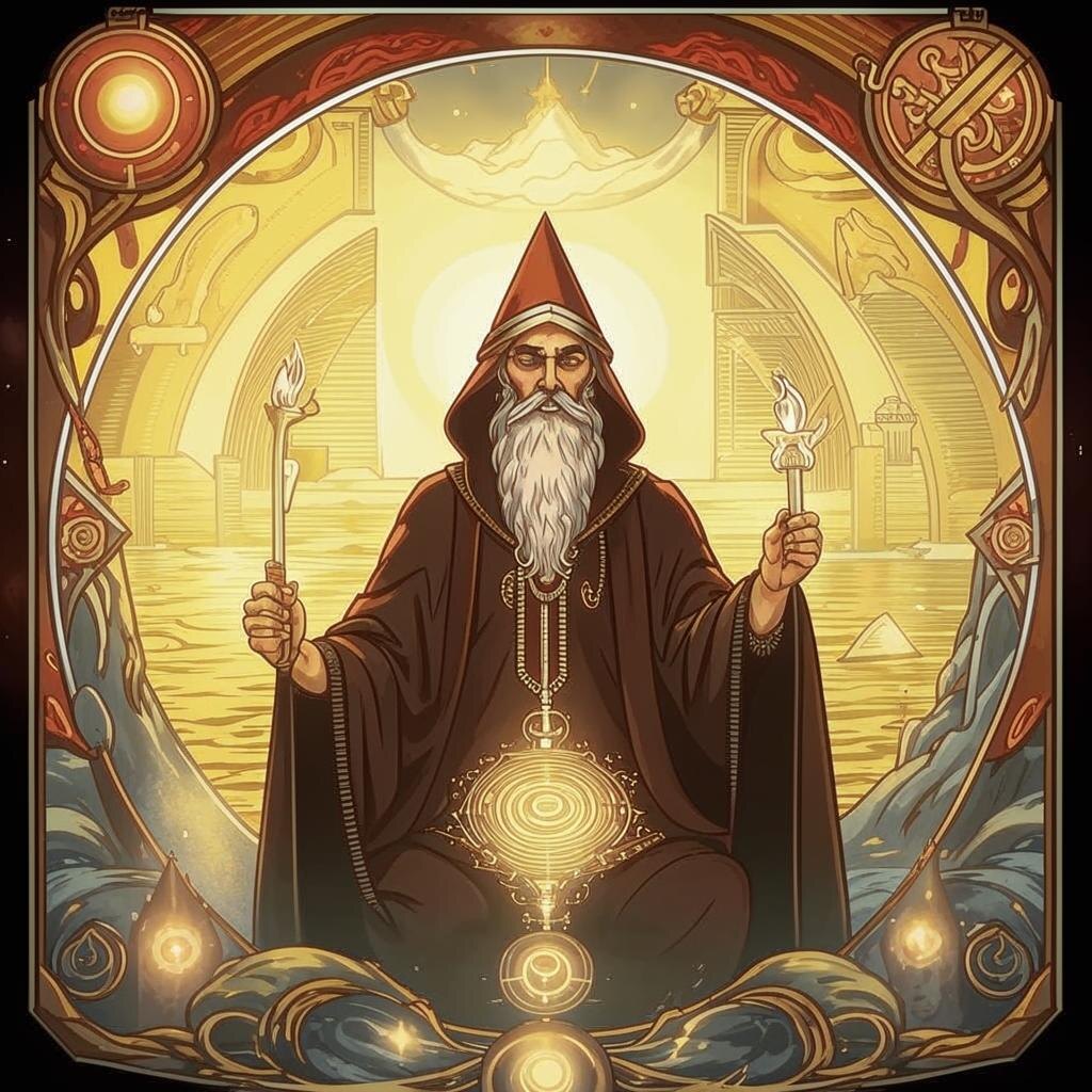 Войдя в пространство Пятого Аркана Жреца, я вдруг оказалась погружённой в абсолютную темноту. Ощущение было такое, будто я ступила в чернильную пустоту, где не существовало ни света, ни звуков. Мой взгляд метался вокруг, пытаясь уловить хотя бы малейший проблеск, но ничего не выдавало присутствия чего-либо рядом. Однако спустя несколько мгновений впереди начала проступать едва заметная точка света. Она манила меня своей таинственностью, словно звала исследовать неизведанное. Медленно продвигаясь вперёд, я почувствовала, как постепенно выхожу из густой тьмы. Свет становился ярче, пока я не оказалась перед огромным витражным окном, которое казалось границей между мирами. За ним раскинулся просторный зал, наполненный множеством студентов. Они сидели за длинными деревянными столами, устремив взгляды в мою сторону. Странное чувство овладело мной: я была одета в необычную одежду, напоминающую древнегреческий хитон, который струился лёгкими складками до самого пола. Этот наряд придавал мне ви