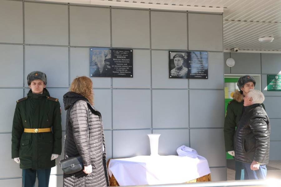 В школе №41 открыли мемориальные доски в честь Ярослава Ниязова и Максима Ховалкина, которые погибли в зоне проведения специальной военной операции. Об этом сообщает администрация Курска. Уточняется, что ранее в учебном заведении была открыта «Парта Героя», посвященная Ярославу Ниязову. Также имя курянина увековечено в «Курском военно-историческом сборнике» – выпуск №22. Добавим, что Максим Ховалкин награжден губернатором Курской области орденом «За верность долгу и мужество» и орденом Мужества посмертно. Юрий ФРОЛОВ, фото администрации Курска Постоянный адрес новости на сайте «Друг для друга» ~ https://dddkursk.ru/lenta/2025/03/21/117300/. Новости Курска за ~ 21 марта ~ март 2025 года.