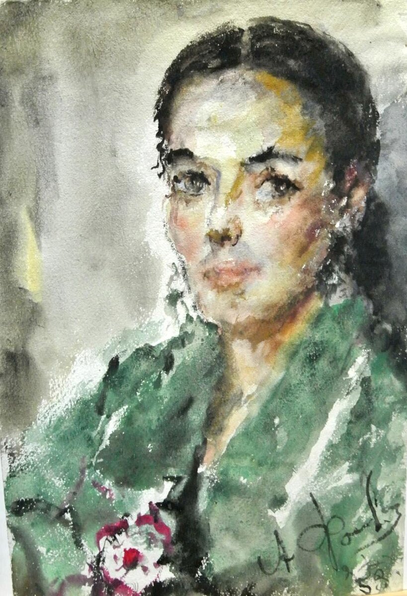 Их первый урок был 8 марта 1948 года. Алла Белякова тогда училась на курсах при архитектурном и откровенно скучала. Кто-то ее спросил: не хотите позаниматься акварелью у Фонвизина? Еще бы она не хотела. Артур Фонвизин, хоть и был фактически запрещенным, но давно стал легендой. Из знаменитого рода обрусевших немцев, из первого русского авангарда, друг Ларионова, приятель Кандинского. Выставки «Бубнового валета», учеба в Мюнхене, пролеткульт в Тамбове, персоналка в 1936 году, дальше – «шайка формалистов», ссылка в Караганду. Судьба Аллы была в чем-то схожей. Ее девичья фамилия – Куколь-Яснопольская, фамилия дворянская. И семья была выслана в Туркестан. Но встретились оба в Москве. Алле было уже за тридцать, мужчины от нее приходили в восторг: черноволосая, с колдовскими глазами и походкой балерины. Фонвизин – противоположность: худой, невзрачный, в очках (тут его автопортрет). Жили они с женой и сыном в большой коммуналке, и уроки – просто способ заработка. Но Алла всю жизнь считала ту