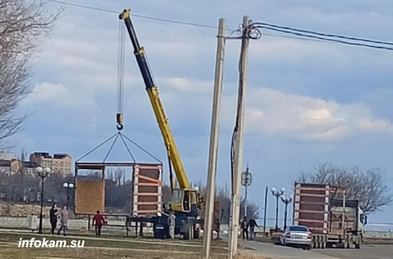В прошлом году в парке Топольки на набережной у реки Камышинки стартовали строительные работы. Были проведены планировочные мероприятия, а также сформирована площадка с покрытием из бетонных плит. Также к будущему объекту подвели электроснабжение. Будущий объект — это летнее кафе. Как видно на фотографии, работы продолжили, едва солнце высушило землю. На площадку сгружают модули, из которых скомпонуют будущий нестационарный объект общественного питания.