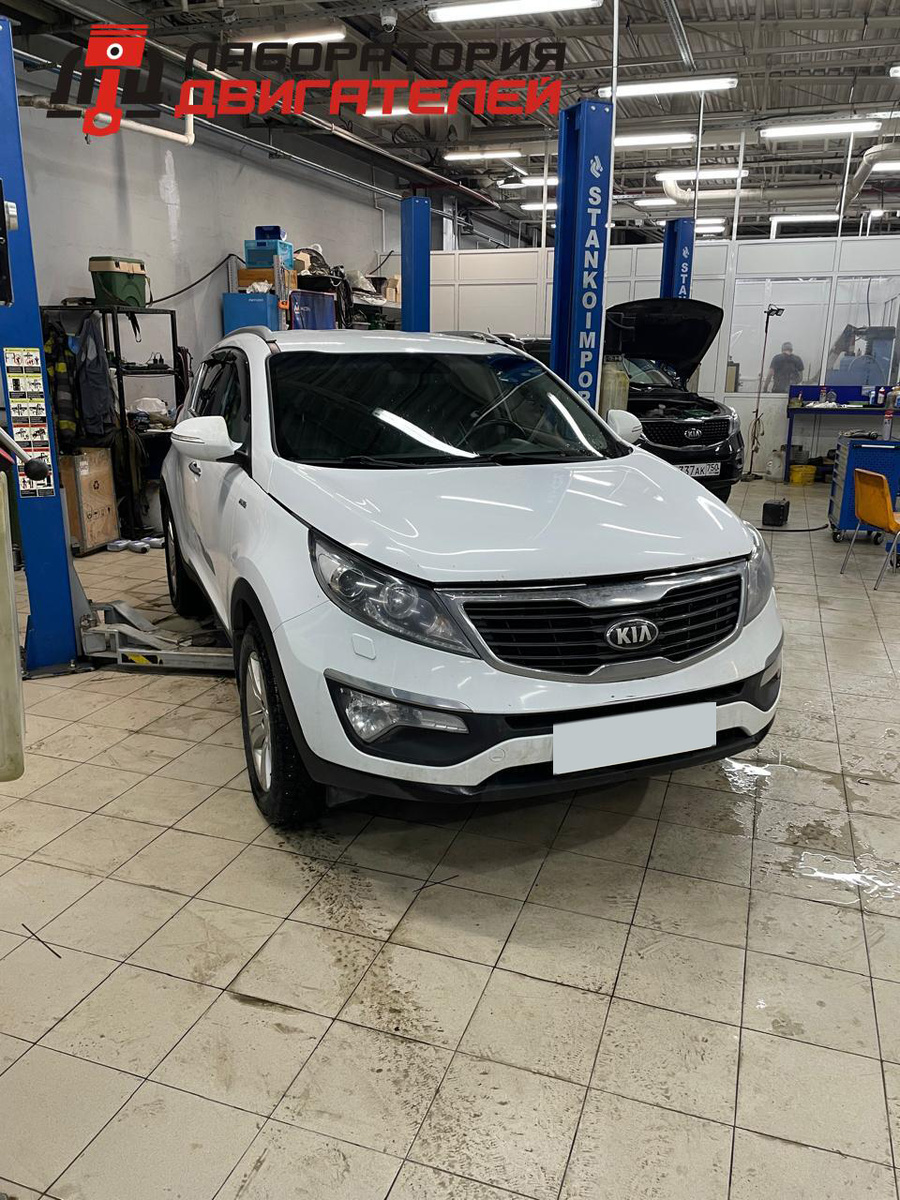 Обратился клиент на автомобиле Kia Sportage 2013 года выпуска, пробег на момент оформления составлял 231 тысячу километров. Причиной обращения владельца к нам, послужила работа двигателя, а именно наличие стука под капотом. Звук появляется преимущественно на холодную. Будем производить капитальный ремонт мотора полного цикла.