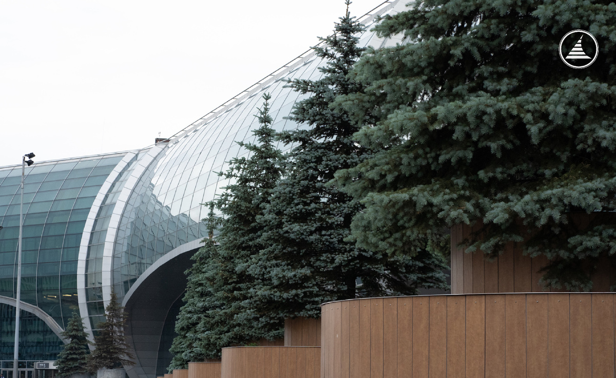 Аэропорт — это не только авиация. В воздушной гавани большое внимание уделяется благоустройству и озеленению территорий. Это включает посадку и ежедневный уход за насаждениями, лугами, газонами, лесопарковой зоной и многолетними растениями по всему аэропортовому комплексу. В статье расскажем подробнее про концепцию озеленения. На привокзальной площади располагаются 27 двухъярусных бетонных «кашпо» — конструкции с декоративной облицовкой деревянными панелями. Пассажиры бывают приятно удивлены, что растения в них живые, а не искусственные. В верхние ярусы «кашпо» высажена вечнозеленая ель сорта «Edit». В нижних ярусах высажены можжевельники сорта «Blue Danube». Это быстрорастущий вечнозеленый кустарник имеет раскидистую, стелющуюся крону с приподнятыми вверх побегами. Хвоя чешуйчато-игольчатая, потрясающая глубиной насыщенного тёмно-зелёного цвета с голубовато-синим отливом. Приспосабливается к любой почве, но без застойной влаги. Устойчив к неблагоприятных климатическим и городским усл