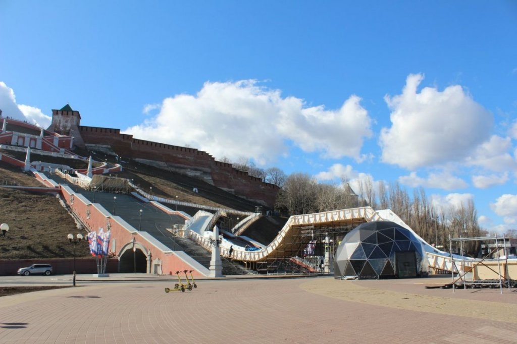 Нижне-Волжскую набережную в Нижнем Новгороде перекроют во время соревнований по айс-кроссу. Первый этап Открытого кубка мира по скоростному спуску на коньках пройдет на Чкаловской лестнице в ближайшие выходные, 22 и 23 марта. Участок дороги от Георгиевского съезда до улицы Широкой потребуется закрыть с 00:01 до 23:00 часов 23 марта, сообщили в пресс-службе мэрии. Объезд арки напротив катера «Герой» будет недоступен 22 марта с 15:00 до 22:00 часов. Изначально соревнования по айс-кроссу хотели провести в прошлые выходные, 14–15 марта. Но из-за потепления их пришлось перенести. Обустройство 270-метровой трассы для скоростного спуска стартовало около месяца назад. Она начинается под нижним кольцом «восьмерки», делает петлю по откосу, возвращается на лестницу и спускается к подножию. За пару дней до соревнований ледовое покрытие было готово только в нижней половине трассы, рассказывал корреспондент GIPERNN.RU. Сейчас его продолжают намораживать. Чтобы лед не растаял на солнце, рабочие укрыв