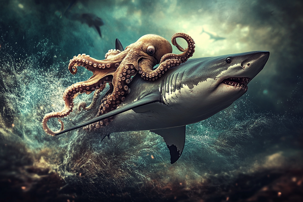 Осьминог прокатился на акуле у берегов Новой Зеландии: видео