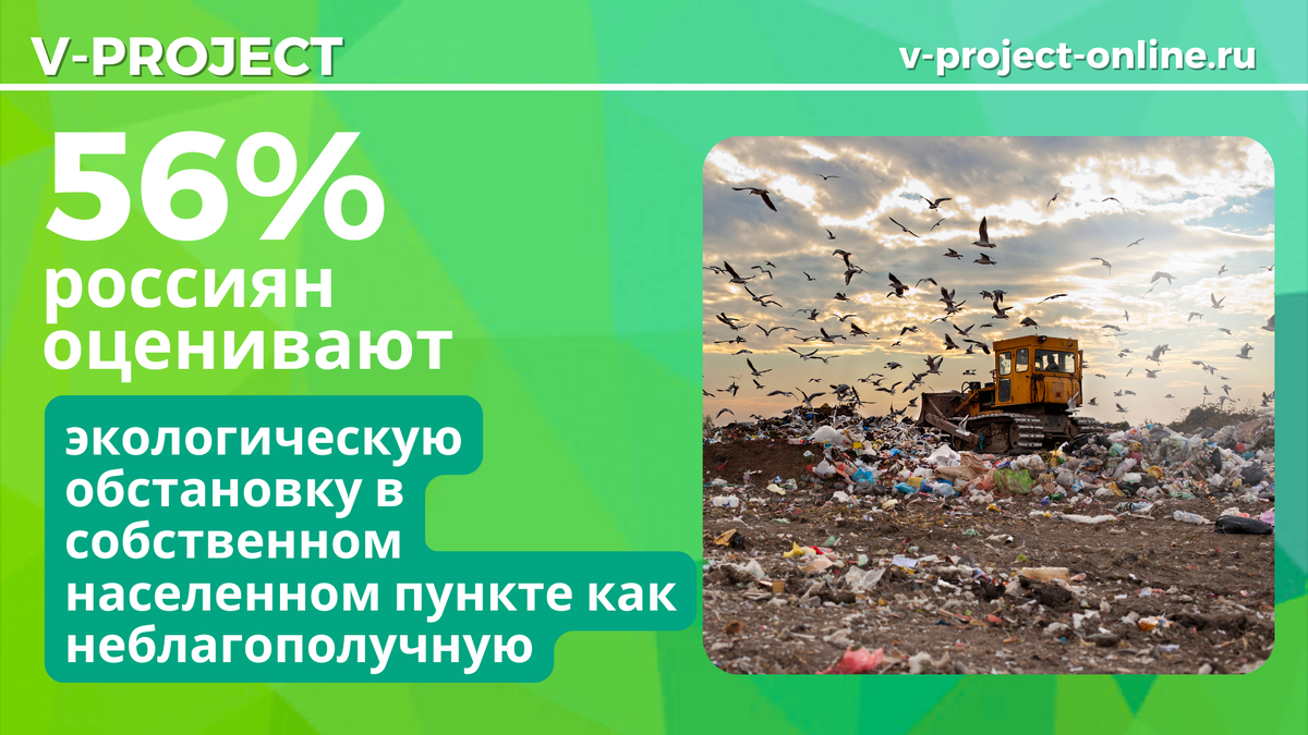 Мусор — одна из острейших проблем в России, с которой каждый человек сталкивается буквально каждый день. И большое количество отходов, как это очевидно, напрямую влияет на экологию во всех уголках страны. Государство уже запустило «мусорную реформу», которая помогает исправить ситуацию. Тем не менее важно понимание россиян о ситуации с бытовыми отходами в стране, системой их переработки и сортировки. Для этого команда V-Project провела соответствующее исследование. Ситуация с отходами на улицах различных населенных пунктов — один из главных маркеров экологической ситуации для жителей России в их месте проживания. Мы попросили пользователей оценить уровень экологии в локациях, где они живут прямо сейчас. Большинство выбрали вариант скорее неблагополучная 56,1%, скорее благополучная — 37,7% и затрудняюсь ответить — 6,2%. Такие результаты во многом понятны: россияне часто сталкиваются с отходами в повседневной жизни, а многие также могут жить вблизи как санкционированных, так и несанкцион