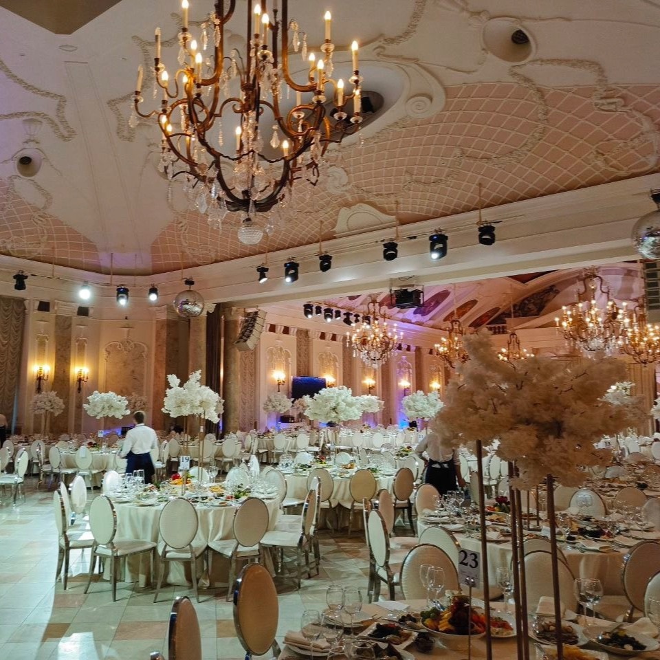 Организация большой свадьбы — задача не из легких, особенно если планируется масштабное торжество, например, свадьба на 700 человек. Как найти площадку, которая вместит всех гостей и поможет создать романтическую обстановку при высоком уровне сервиса? В этой статье мы разберем критерии выбора и рассмотрим лучшие варианты для свадьбы. Важно, чтобы на выбранной площадке было достаточно пространства для всех ваших гостей. Загородный ресторан «Летний дворец» — идеальное решение для больших свадеб. Два зала с роскошными дворцовыми интерьерами могут принять до 800 гостей. Для масштабных свадеб необходимо, чтобы все этапы проходили в одном месте, так как быстро переместить многочисленных гостей сложно. В «Летнем дворце» можно устроить выездную регистрацию, сам банкет, вечернюю шоу-программу и даже салют, для которого здесь не требуется специального разрешения. Современное свадебное торжество трудно представить без качественного звукового и светового оборудования, особенно если в программу вхо