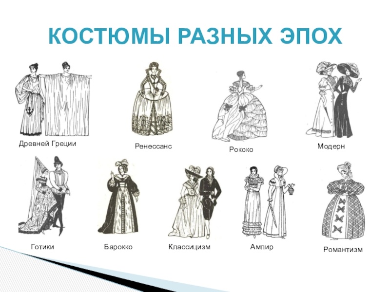 Мода и стиль разных эпох. ✏️ Мода и стиль разных эпох: путешествие сквозь время Мода — это не просто одежда. Это отражение эпохи, зеркало, в котором мы видим культуру, ценности и даже политические настроения прошлого. Давайте отправимся в увлекательное путешествие сквозь время и посмотрим, как менялись стили на протяжении веков! Античность: Древние греки и римляне ценили простоту и элегантность. Хитон и тога, драпированные ткани, сандалии — вот основные элементы их гардероба. Белый цвет считался символом чистоты и благородства. Средневековье: Время рыцарей и прекрасных дам. Длинные платья с завышенной талией, корсеты, головные уборы, яркие цвета и богатые ткани для знати, простая одежда из льна и шерсти для простого народа. Возрождение: Эпоха расцвета искусств и наук. Возвращение к античным идеалам красоты. Пышные платья с глубокими декольте, рукава-буфы, украшения из драгоценных камней. Барокко и рококо: Время роскоши и излишеств. Кружева, банты, рюши, парики, вышивка золотом и серебр