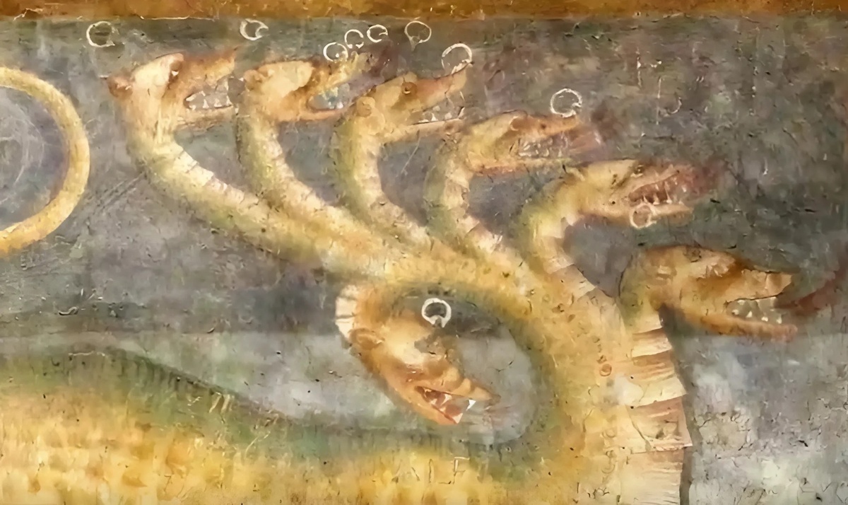 "И стал я на песке морском, и увидел выходящего из моря зверя с семью головами и десятью рогами. На рогах его было десять диадим, а на головах его имена богохульные." (Откр. 13:1)