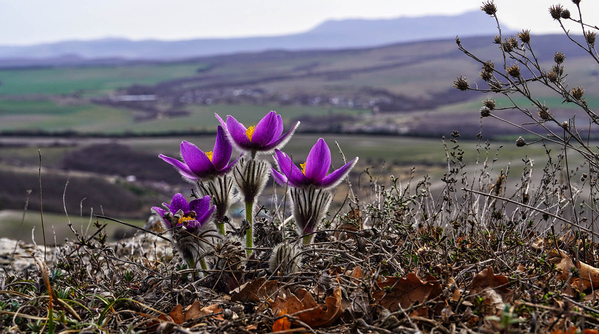 Зимы в этом в Крыму году толком не было. А в марте весна была больше похоже на начало лета. Температура в Симферополе поднялась за отметку +20 градусов. А это естественно стимулировало (или должно было стимулировать) множественные крымские первоцветы расцвести. Собственно начало этого процесса мною уже были отснято на Аю-Даге ( https://dzen.ru/a/Z9Bea5214EmRdoUz ) , который плотно оккупировали подснежники. Понятно, что крымские первоцветы не заканчиваются на подснежнике складчатом и крокусе (шафране) сузианском. Поэтому я в очередной раз жаждал прогулять в гости к прострелу крымскому, который мы снимали в прошлом году в окрестностях пригорода Симферополя (поселок Чистенькое) на Таш-Даржагане. В свете данного желания в прошлую субботу я с Надей отправились на прогулку из этого поселка. Должен сказать, что в Чистеньком возле дворов цвела масса цветов и абрикос с миндалем. А вот за поселком в поле было как-то грустно. Хотя обычно сразу за поселком в поле традиционно желтело большое количество цветов адониса весеннего (горицвета). Это навевало на не веселую мысль - а не рановато мы приехали?