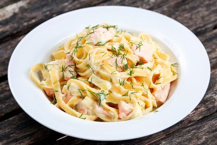 Рецепт приготовления феттучини с семгой в сливочном соусе с указанием БЖУ