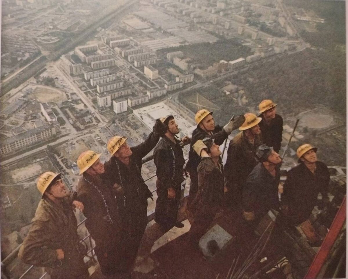 В 1966 году строительство достигло решающего этапа. Рабочие поднялись на сотни метров над землёй, закрепляя элементы уникальной конструкции. В то время Останкинская башня становилась не просто телебашней, а рекордным сооружением — самым высоким в мире.