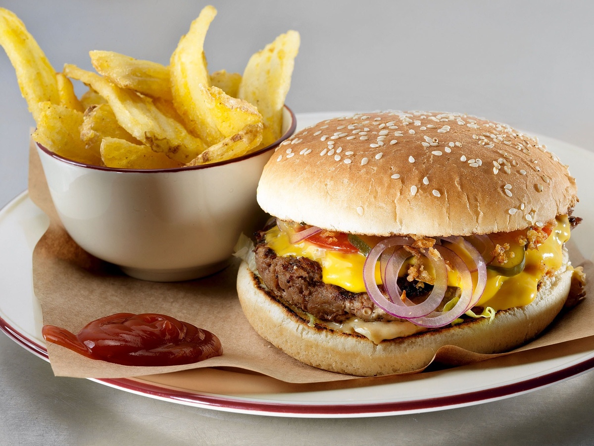 Приготовить сочный и аппетитный бургер дома проще, чем кажется! Вот простой рецепт, который порадует вас и ваших близких: Ингредиенты: - Булочки для бургеров - Мясной фарш (говядина или смесь говядины и свинины) - Сыр (чеддер или любой другой на ваш вкус) - Листья салата - Помидоры - Огурцы (маринованные или свежие) - Лук (красный или карамелизированный) - Соус (майонез, кетчуп или специальный бургерный соус) Приготовление: 1. Формируем котлеты: Возьмите фарш, добавьте соль, перец и специи по вкусу. Сформируйте круглые котлеты толщиной около 1,5 см. 2. Жарим котлеты: Разогрейте сковороду или гриль. Обжарьте котлеты с двух сторон до золотистой корочки (примерно 3-4 минуты с каждой стороны). В конце положите сверху кусочек сыра, чтобы он расплавился. 3. Подготавливаем булочки: Разрежьте булочки пополам и слегка подрумяньте их на сковороде или в тостере. 4. Собираем бургер: На нижнюю половину булочки нанесите соус, затем положите лист салата, котлету с сыром, ломтики помидора и огурц