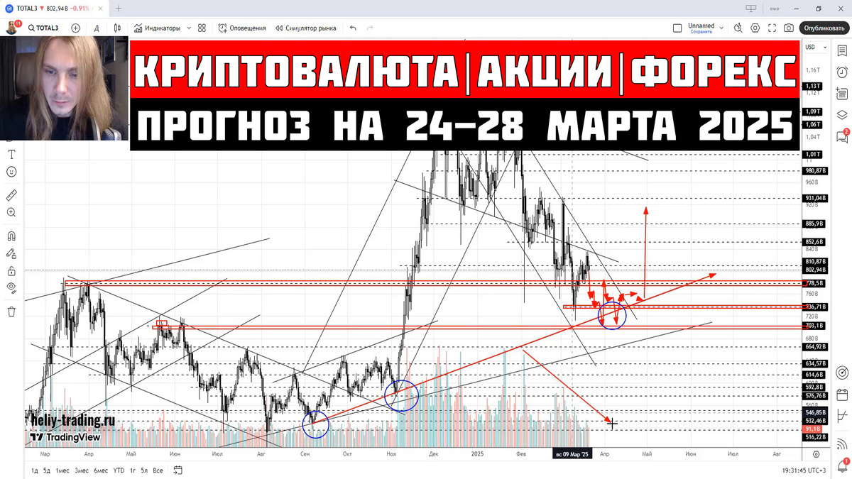 Прогноз криптовалюты, акций, форекс на 24 - 28 марта 2025: eurusd евро/доллар, gbpusd фунт/доллар, usdchf доллар/франк, usdjpy доллар/иена, индекс доллара, валюта usd, usdrub доллар/рубль, cnyrub юань/рубль, криптовалюта, биткоин btc, эфириум eth, лайткоин ltc, рипл xrp, солана sol, бинанскоин bnb, тонкоин ton, индекс криптовалют total3, альткоин usdt, золото xauusd, серебро xagusd, нефть brent, природный газ, индексы, снп 500 s&p, насдак nasdaq, акции, сбербанк sber, газпром gazp, лукойл lkon, роснефть rosn, ртс rtsi, ммвб imoex, трейдинг, инвестиции, фондовый рынок.