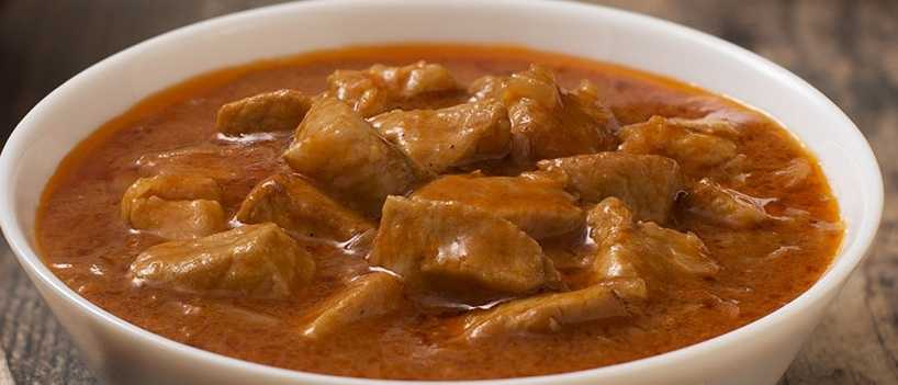 Гуляш из свинины по классическому рецепту - для многих это вкус детства, поскольку наши бабушки были довольно далеки от фрикасе или фахитаса и готовили нам самый обычный, вкуснейший гуляш с густым, насыщенным томатным соусом. Это блюдо может обогащаться вкусом различных овощей- морковью, тыквой, перцем, а может готовиться с добавлением грибов, что тоже очень вкусно и ароматно. Изменить состав Свинина 500 гркг Лук 1 гркгшт. Томатная паста 2 гркглмлстак.чайн.л.стол.л.десерт.л. Пшеничная мука 1 гркгстак.чайн.л.стол.л.десерт.л. Вода 400 лмлстак.чайн.л.стол.л.десерт.л. Растительное масло 20 грлмлстак.чайн.л.стол.л.десерт.л. Лавровый лист 1 гршт. Соль по вкусу Специи сухие по вкусу