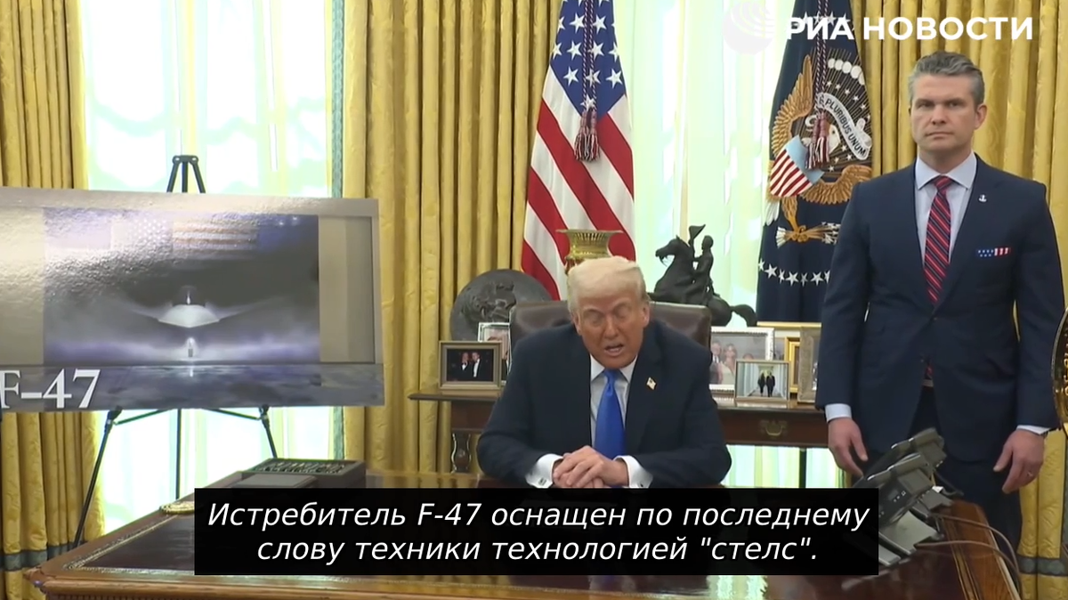 - "ВВС США приступают к реализации программы шестого поколения истребителей, и это будет F-47. Его уже тайно испытывают, и мы уверены, что он превосходит любые самолеты в мире. Его маневренность, скорость — более двух Махов, вооружение и скрытность — такого еще не было";