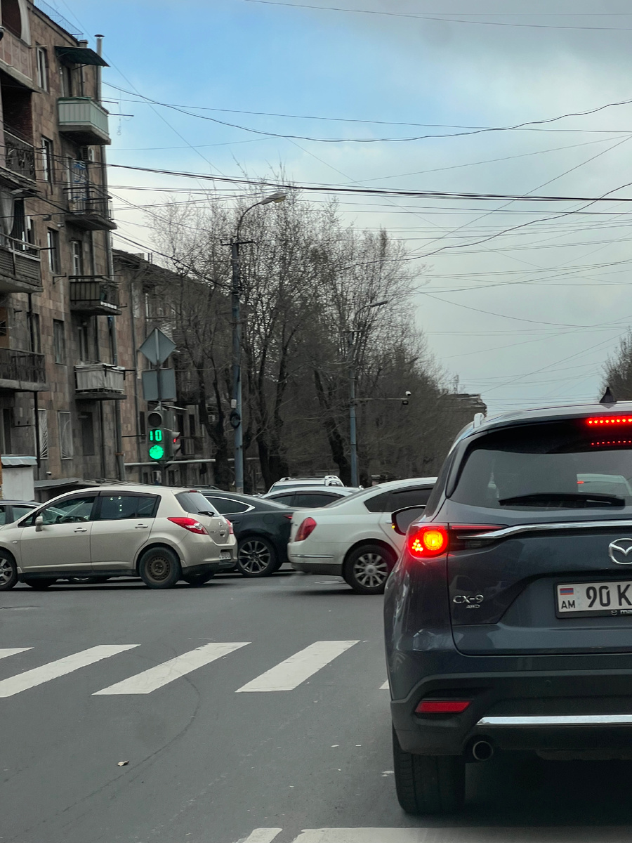 Знаете этот момент, когда подъезжаешь к перекрестку и остается пара секунд зеленого? И вот каждый раз думаешь: проехать или уже остановиться? Армянские водители об этом не думают. Они об этом не думают, когда загорается желтый. И еще пару секунд красного тоже не думают. Армяне всегда едут до последнего. Из-за этого в час-пик происходит мешанина на перекрестке. В России есть правило: если впереди образовался затор, то на перекресток выезжать нельзя. Здесь так не работает (не знаю, действует ли это правило на законодательном уровне здесь). Армянский водитель ВСЕГДА едет. И не важно, что ехать-то и некуда, а ты остановился посреди дороги, полностью перекрыв движение машинам, которые едут перпендикулярно. А те машины? Думаете они будут ждать? Ну нет, конечно! Они тоже поедут, заежая в любую свободную дырочку и перекрывая движение еще сильней. А самый прикол, что все начинают бибкать и махать руками. Вы наверняка представляете такой характерный жест рукой, который как бы означает “Эй, ну