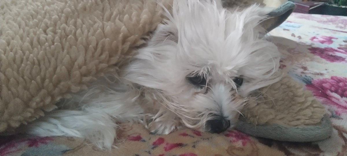 Вот в таком состоянии сейчас наша Жужечка...Больно смотреть на нее... Надеюсь,что это ,после укола..Врач сказал, что она будет вялой. Сходила раз ,попила водички и молока. Конечно сил у нее нет..Она два дня ничего не ест. Завтра к открытию, поедем снова. Дай бог эту ночь...она переживет и все будет хорошо ❤️ ❤️ ❤️ Я накрыла ее своей жилеткой. Она вроде и не спит, но и видно,что ей плохо🙏🙏 🙏 На лапочке у нее стоит катетер...