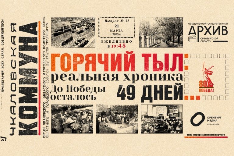 В новом выпуске рассказываем о сборе средств на постройку второй танковой колонны и эскадрильи самолетов. А также о выездах профессорско-преподавательского состава вузов Чкалова в колхозы и совхозы области, шефстве коллектива комбикормового завода над школой № 33 г. Чкалова. События комментируют доктор исторических наук, профессор Оренбургского государственного педагогического университета Равиля Хисамутдинова и доктор исторических наук, профессор Оренбургского государственного аграрного университета Алла Федорова, начальник Оренбургского центра по гидрометеорологии и мониторингу окружающей среды филиала Приволжского федерального управления по гидрометеорологии и мониторингу окружающей среды Василий Мещерин. Также в выпуске — воспоминания о военном детстве инженера-экономиста Лидии Алексеевны Савиной Проект «Горячий тыл: реальная хроника» подготовлен архивной службой Оренбургской области и посвящен 80-летию Победы в Великой Отечественной войне. Оренбург Медиа — информационный партнер п