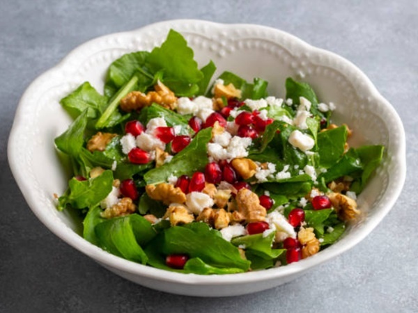 • Соль и перец по вкусу Салат из шпината и рукколы с добавлением грецких орехов и граната сочетает в себе элементы средиземноморской и североамериканской кухни. Шпинат и руккола известны своими полезными свойствами, а гранат добавляют яркие нотки сладости и кислинки, что делает блюдо не только вкусным, но и полезным. Главное отличие этого салата заключается в сочетании разных текстур и вкусов: нежный шпинат, пикантная руккола и хрустящие орехи — все это создает уникальную гармонию. Добавление сыра делает салат питательным, а зерна граната добавляют яркий цвет и дополнительный вкус, что делает салат ос