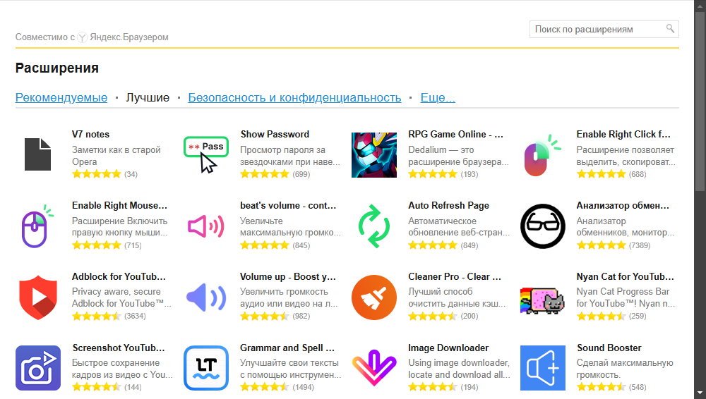Расширения – это небольшие программы, которые добавляют в браузер новые функции и возможности. Яндекс.Браузер уже содержит несколько десятков предустановленных инструментов, но при необходимости вы можете установить дополнительные расширения. Существует два основных источника для поиска и установки расширений: 1. Найдите нужное расширение в каталоге Например найдем расширение «Gismeteo» (погодный информатор). Для этого в поле поиска начинаем вводить название интересующего нас расширения, тут же каталог автоматически предлагает нам на выбор все расширения в названиях которых встречается искомое слово. Рис. 5 Далее нажимаем клавишу «Enter» и кликом левой кнопки мышки выбираем интересующее нас расширение. Рис. 6 2. Нажмите кнопку «Добавить в Яндекс.Браузер» Рис. 7 3. Подтвердите установку Рис. 8 4. Дождитесь завершения установки 5. Найдите новый значок справа от адресной строки Рис. 8 В данном расширении и в большинстве расширений присутствует кнопка настроек, которая изображается в виде