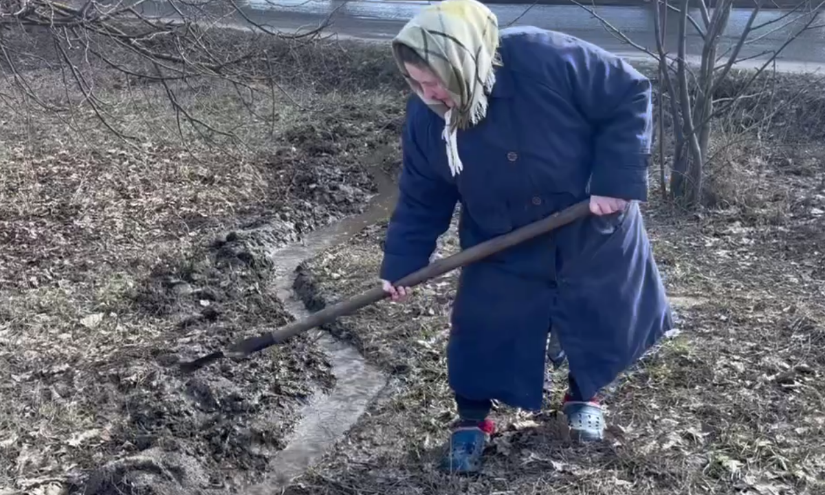 74-летняя бабушка в Тамбове уже 3 недели ежедневно подкапывает ручей. зачем ей это?