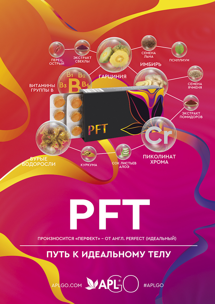 PFT*(произносится «перфект») – от англ. PERFECT (идеальный) Это поистине один из самых ожидаемых продуктов линейки Acumullit SA® в Компании APL® GO. PFT приводит аппетит в норму, что помогает мягко и естественно снизить вес. *Биологическая активная добавка к пище PFT (перфект) с витаминами группы В и хромом. Преимущества · Имбирь · Снижает аппетит благодаря входящим в него веществам - гингеролу и шогаолу, улучшает метаболизм, снижает аппетит. Нормализует работу пищеварительной системы - помогает нам перейти на правильное питание. · Алоэ вера · Ускоряет метаболические процессы, приводящее к сокращению накоплений жировых отложений. В результате роста стимуляции эластина и коллагена осуществляется оздоравливающее воздействие на кожу во время устранения лишнего веса. · Гарциния · Нормализуют уровень глюкозы, снижают чувство голода, продлевают чувство сытости, уменьшают количество жировых отложений. · Куркума · Способствует очищению организма, улучшая работу почек, печени и желчного пузыря,
