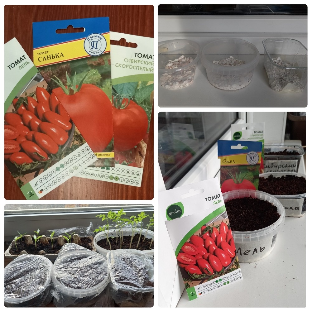 Сегодня я сею томаты сортов: «Сибирский скороспел», «Санька» и «Лель». Эти сорта считаются скороспелые и детерминантные. Суть их заключается в том, что они невысокие, компактные, неприхотливы в уходе, не требуют пасынкования и быстро созревают. Во всяком случае, так уверяет производитель. В целом, то что нужно для начинающих огородников.