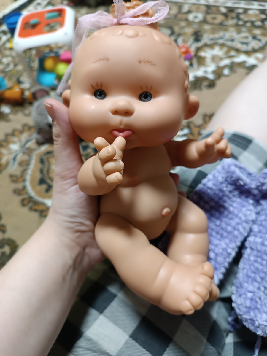 Вот и настал тот прекрасный момент когда мы с ребенком вплотную начали учить части тела...все родители помнят эту увлекательную игру...а где у мамы носик? А где у тебя? Получив пару раз пальчиком в глаз, я решила минимизировать потери и показывать мы стали на кукле. Для этих целей я пожертвовала свою испанскую Мию...и сильно об этом пожалела, больше всего сынулю заинтересовали конечно куклячьи кудряшки и он активно начал наводить ей модную прическу....поэтому куклу забрала и решила купить пупса. Изначально хотела пупса который пьет и писает на горшок, полностью резинового без разговорных устройств, но после долгих выборов поняла что мне категорически не нравится то что торчит между ног куклы, приспособление через которое она так сказать и осуществляет свои мокрые дела в горшок. И опять же желания и возможности вещи разные, те пупсы которые глянулись на мордашку стоят не дёшево, а вдруг ребенок и играть то с ним не будет? В таком раздрае забрела я на Авито и пролистав ленту увидела то ч