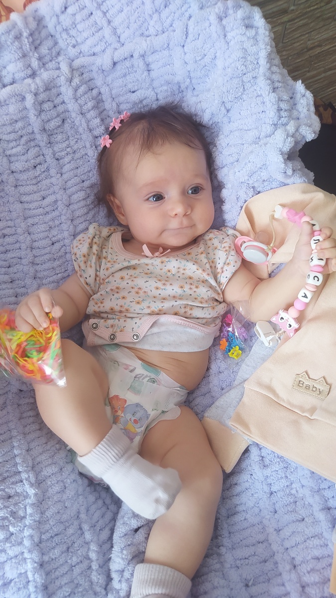 5900 вес 63 рост Оказывается мы должны были в два месяца сдать анализы -мочу и кровь из пальчика, но как то нас упустили из вида. Назначили перед следующим приёмом. Чего мы умеем в три с половиной месяца? Очень любит общаться, гулит разными звуками, всё чаще получается что то похожее не МАМ👀реагирует на интонацию, мимику. Смешно выпячивает нижнюю губоньку э хочет заплакать, ой это так мило🥰 Спит хорошо, кушает тоже, какает , бодрствует уже подольше. Лежит одна тоже хорошо, на животике или на спине- у нас разнообразие😁 на ручках тоже конечно любит побыть. Маленькими ручками пытается сама брать что нибудь.. Второй раз начинает переживать за десна, волнуется очень и тянет в рот кулачки постоянно. Из за дёсен появляются и сопли, ведь высморкаться маленькая лялька не может и они начинают булькать где то там в глубинах носоглотки.... Спасает соплеотсос очень, правда очень Алиса орет, когда эти со плюхи из носика вытягиваю, ( жалко что ли, всё своё ведь, родное🤣) С животика перево