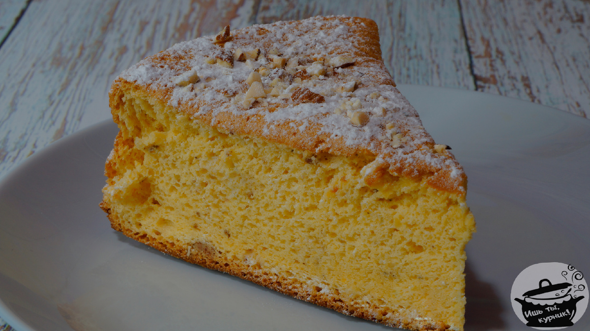 Для торта весом около 600 г: муки пшеничной 1 стакан; сахарного песку в тесто 1 стакан, на отделку 1 ст. ложку; белков 9; желтков 10; миндаля чищенного мелко нарубленного 2 чайные ложки; миндаля для отделки 1 ст. ложку. В кастрюле натереть желтки с сахаром. В другой кастрюле взбить белки до получения пышной пены (пена должна держаться на веничке) и переложить их в кастрюлю с желтками, слегка перемешать, добавить муку, смешанную с мелко нарубленным миндалем, и снова перемешать. Готовое тесто положить в круглую, смазанную маслом и посыпанную мукой форму высотой 4—5 см. Тесто сверху украсить миндалем и посыпать сахарным песком. Форму с тестом поставить в духовой шкаф на 25—30 мин при температуре 180— 200°. Выпеченный бисквитный торт охладить и осторожно выложить на блюдо. Приятного аппетита!