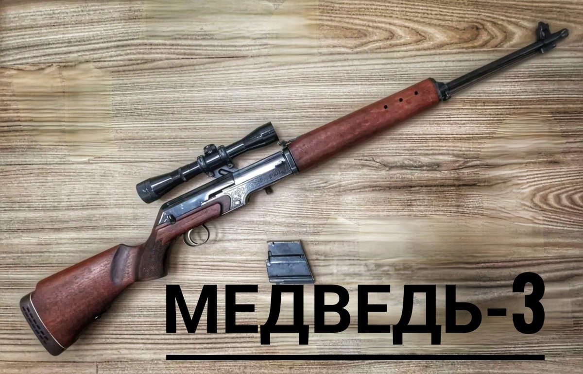 ▎Карабин охотничий "Медведь-3" Карабин "Медведь-3" - разработан для охоты в сложных климатических условиях.Данный карабин предназначен для промысловой и любительской охоты преимущественно на среднего и крупного зверя,он отличается хорошей точностью и мощностью. | Характеристики: • Калибр: 7,62x51 мм(308 win) • Вес: 3,4 кг • Ёмкость магазина: 4 патрона • Прицельная дальность: до 500 м • Длина общая: 1110 мм • Длина ствола: 550 мм ▎Конструкция и особенности 1. Ствол: Ступенчатый цилиндрический ствол с четырьмя прямоугольными нарезами. Хромированное покрытие увеличивает долговечность и упрощает уход за оружием. 2. Система перезарядки: Карабин использует энергию пороховых газов для автоматической перезарядки. Часть газов отводится в газовую камеру, где они воздействуют на толкатель через поршень, перемещая затворную раму. 3. Затвор: Запирание на 3 боевых упора,это обеспечивает надёжное удержание патрона. Ударный механизм с отдельной боевой пружиной. 4. Предохранитель: Оснащё