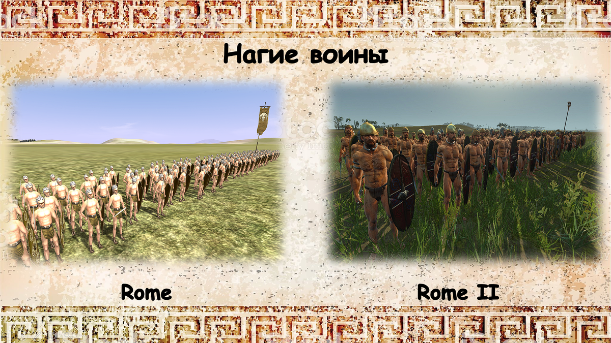 Голые кельты – очень необычный и своеобразный отряд. Думаю, все кто играл в эту игру запомнили этих безрассудных варварских храбрецов. Голые кельты – тяжелая пехота ближнего боя (хотя тип оружия – лёгкий), с очень неплохими показателями в атаке, но имеющими очень слабую защиту. Роль в сражении этого подразделения – штурмовая пехота, которую стоит беречь от натисков конницы и обстрела противника. Удерживать позиции голые кельты явно не способны, а вот ударить во фланг или в тылы и быстро опрокинуть врага – это по их части. Кроме того, отличаются высоким боевым духом и большим запасом выносливости. Из особых умений – боевой клич, который улучшает и без того не маленький показатель атаки. Как видно из названия, доспехов и одежды голые кельты не носят. А внутриигровое описание гласит что их кожа покрыта татуировками, а тело шрамами. Из вооружения имеют длинный меч и большой щит. Это подразделение доступно для найма Галлии, Германии, Дакии и Испании. Во втором Риме аналог голых кельтов – на