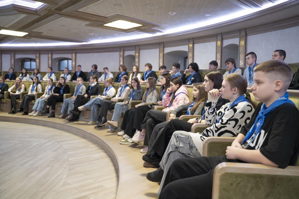 Встреча журналиста, телеведущего, художественного руководителя телевизионной студии «Неофит» Дмитрия Владиславович Менделеева с учащимися школ Самары, которая прошла 11 марта 2025 г. в Сретенской духовной академии в рамках совместного Просветительского проекта с Финансовым университетом.