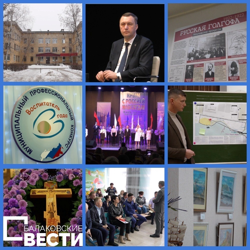Всю неделю информационный центр «Балаковские вести» освещает для вас, дорогие читатели, самые важные и интересные события Балакова. Если вы вдруг пропустили что-то, то не беда! Мы сделали подборку наших видеосюжетов за эту неделю (с 17 по 23 марта): 1. Старейшее здание балаковской поликлиники обретает современный вид 2. Итоги подведены, задачи поставлены: состоялось собрание актива Балаковского района 3. В Городском выставочном зале прошла выставка «Русская Голгофа» 4. Мастерство, талант и любовь к детям: подведены итоги муниципального этапа Всероссийского конкурса «Воспитатель года-2025» 5. «Крым с Россией навсегда»: балаковцы отметили 11-ю годовщину со Дня воссоединения Крыма с Россией 6. Балаковцы приняли участие в обсуждении проекта благоустройства набережной у моста Победы 7. В начале было Слово. Передача 63. Неделя Крестопоклонная 8. Глава Балаковского района встретился с жителями села Еланка 9. «Крым – жемчужина России» Балаковские вести – только нужные слова!