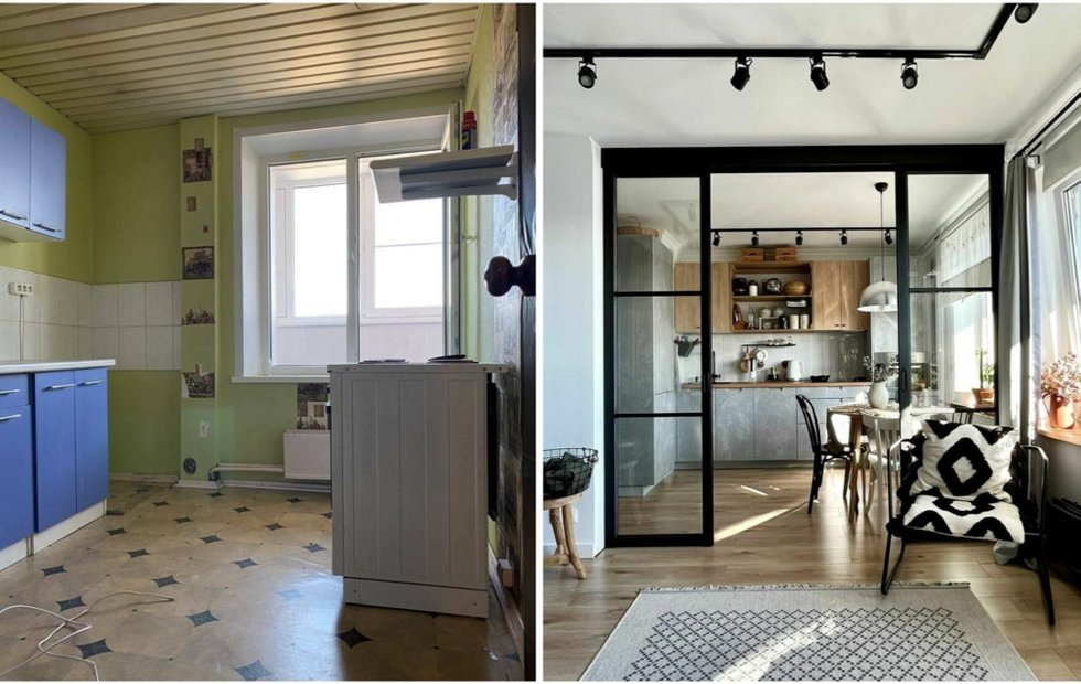 Невероятное преображение небольшой квартиры Дизайнер-блогер Алёна поделилась историей масштабного ремонта в панельном доме в московском районе Строгино. Серия дома предположительно И-700. Изначально квартира находилась в плачевном состоянии, но имела главное преимущество — возможность перепланировки. Тип дома: панельный дом Высота потолков: 2,45 Дизайн: Алена Жирова «Изначально здесь был очень старый ремонт, особенно интересно это туалет и ванна. Но самое сложное здесь было то, что здесь были закладные и старый паркет, под этими закладными был песок», — рассказывает хозяйка. Проблемы старой квартиры: «Изначально мы выбрали эту квартиру как раз потому что здесь можно было сделать перепланировку, и задача у нас была первая — это в принципе сделать спальню. Очень хотелось, чтобы в этой квартире была именно спальная зона, и второй задачи — это было объединить гостиную с кухней и сделать такое большое общее пространство». Что сделали: «Батареи — отдельная история. Изначально мы хотели их ме