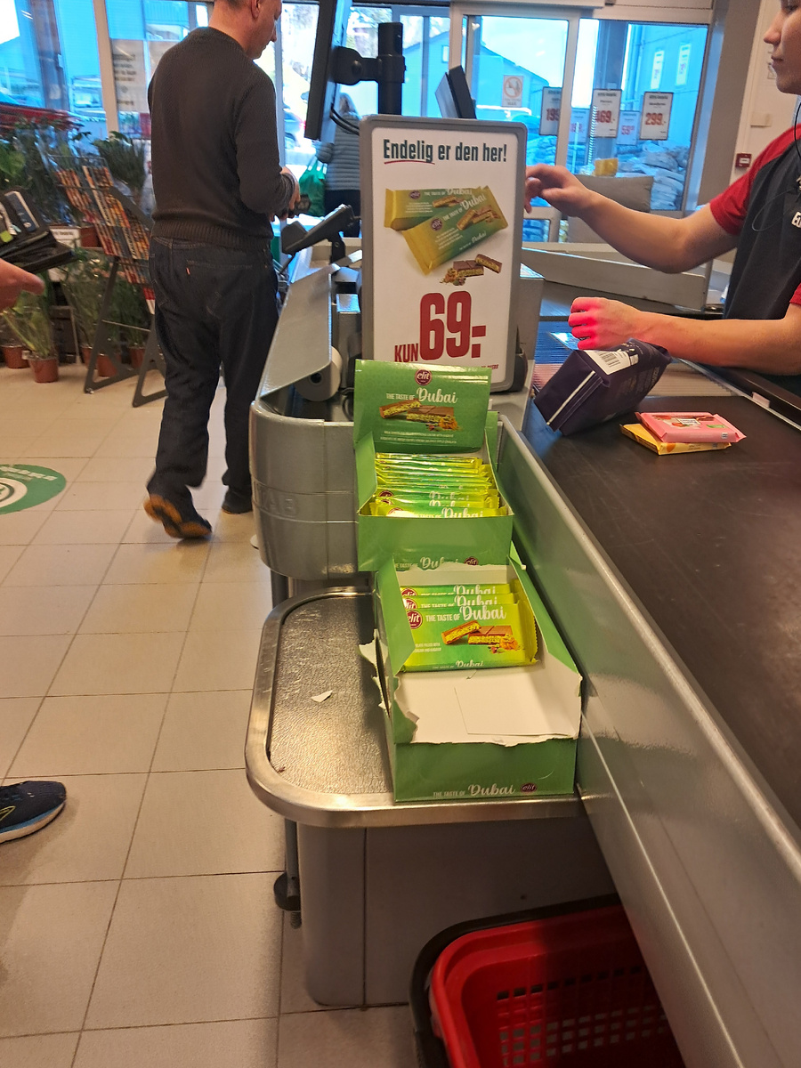 Я не большой любитель сладостей. Предпочитаю фрукты. Иногда покупаю себе пару плиток молочного шоколада с кофе. Больше из сладостей люблю зефир или пастилу. Несколько раз краем уха слышала про дубайский шоколад. Но без особенного интереса. Народ даже нелегально, судя по новостям, пытается на продажу в Россию ввезти. Реклама утверждает, что плитка дубайского шоколада - хороший подарок любимой девушке. Но вот увидела в местном магазине Европрайс небольшие плитки с надписью "наконец -то здесь". Цена -- 69 крон за небольшую плитку в 90 грамм.Стало интересно попробовать. Купленное мной кондитерское изделие оказалось выпущенным под маркой Элит в Турции. Честно говоря, меня не впечатлило. Похоже на вафлю с ощутимым фисташковым вкусом, с похрустыванием на зубах по вафельному типу. Количество сахара явно, на мой вкус, избыточное. Никакой особой изысканной уникальности вкуса я не обнаружила для себя. Непонятно, почему это изделие такое дорогое. Чересчур активно-навязчивая реклама наводит на