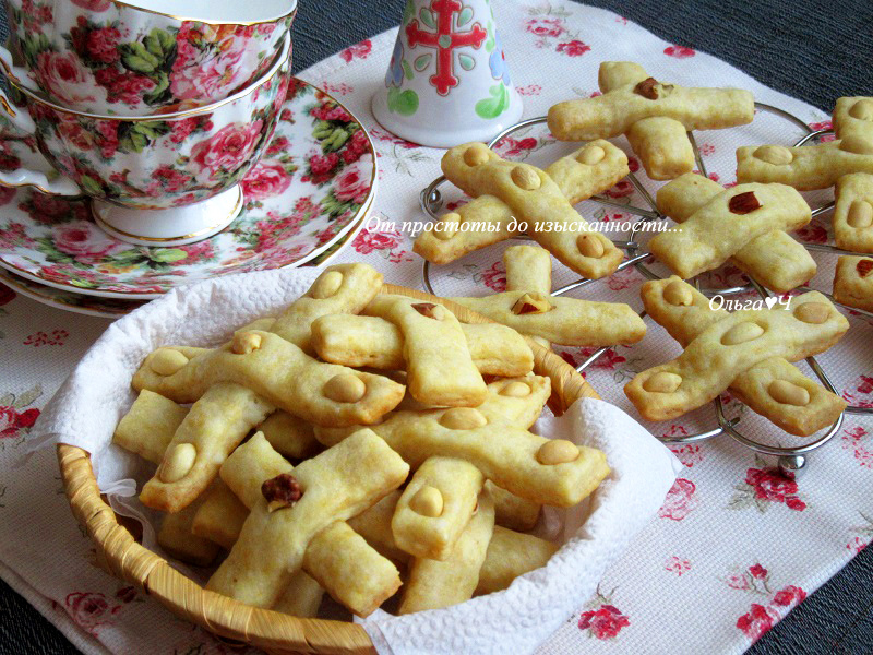 Всем доброго воскресного дня! Поздравляю всех причастных с Праздником и представляю вашему вниманию традиционную выпечку Великим постом - печенье в виде крестов, которое печется в неделю Крестопоклонную (третье воскресение от начала Великого поста). Получается хрустящее, в меру сладкое печенье с миндалем, грецкими орехами и арахисом. Попробуйте! Ингредиенты: 420 г муки
