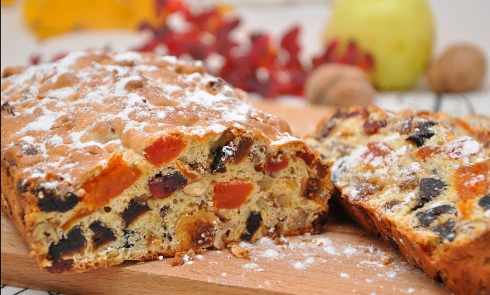 Этот вкусный и невероятно красивый в разрезе кекс наполнен ароматом лета. Ведь главный ингредиент этой выпечки не тесто, а несколько видов сухофруктов. Он придется по душе всем, а особенно тем, кто сидит на правильном питании. Готовится без заморочек – быстро и легко. Для кекса из сухофруктов понадобятся: - 200 г ассорти из сухофруктов по вкусу (курага, манго, изюм, финики, клюква, клубника – все, что по душе); - 150 г грецких орехов; - 6 столовых ложек пшеничной муки; - 2 яйца; - 3 ст. ложки сахара (или заменителя сахара); - 1 ч. ложка разрыхлителя теста; - щепотка соли. ШАГ 1. Выложите сухофрукты в миску и залейте их горячей водой на 15-20 минут. Это поможет сделать их более мягкими и ароматными. После этого тщательно процедите, просушите на салфетках и, если нужно, нарежьте на мелкие кусочки. ШАГ 2. Грецкие орехи слегка обжарьте на сковороде без масла до золотистого цвета. Это придаст кексу особые аромат и вкус. ШАГ 3. Просейте муку. В глубокой миске взбейте яйца с сахаром (или заме