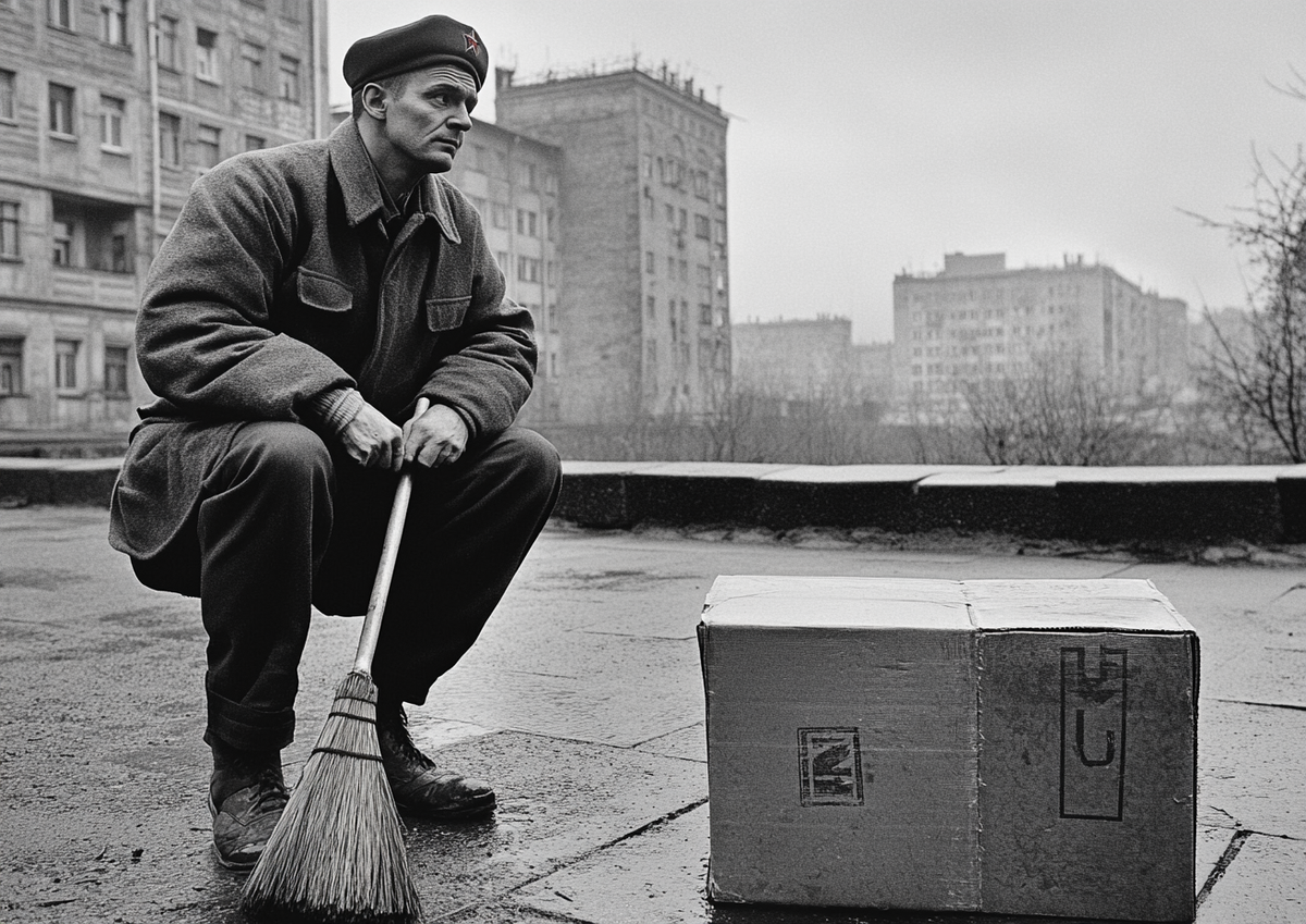 - Нежелательно, но если иначе никак: разрешить дворнику часть дня откалывать от коробки кусок и относить на мусорку частями, пока коробка не станет достаточно лёгкой
