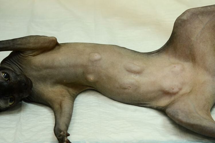 Наиболее распространенным признаком опухоли молочной железы у собак и кошек является хорошо ощутимое образование под кожей живота. Однако есть и другие признаки, и симптомы: характерные выделения из молочной железы, болезненные, опухшие груди, язвы кожи над грудью, потеря аппетита и веса, общая слабость и апатия. При появлении таких признаков нужно немедленно обратиться к ветеринару. Диагностика в первую очередь будет включать тщательный общий медицинский осмотр, который позволит специалисту определить местоположение, размер и общий характер всех новообразований молочной железы и оценить их опасность. Понадобятся и другие процедуры, такие как общий анализ крови, химический анализ, анализ мочи, профиль свертываемости крови, УЗИ брюшной полости, рентгенография и компьютерная томография, которая используется для диагностики рака. Лимфатические узлы также должны быть исследованы на предмет распространения раковых клеток. Все это позволяет определить характер заболевания и разработать оптимальный метод лечения.