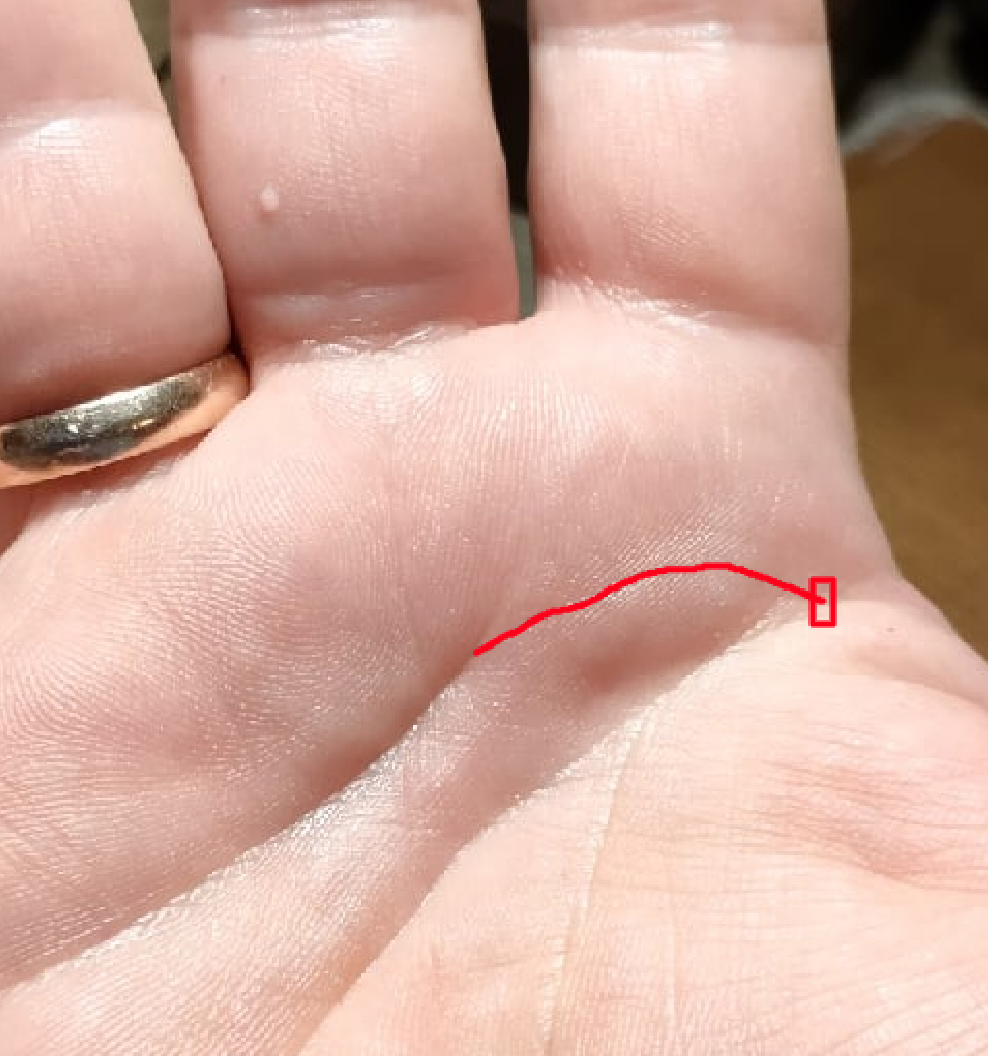 Стоит отметить, что это выглядит по-разному. Иногда падает сама линия сердца, а иногда и просто ветка от нее - суть одинаковая, но сила "психологической травмы" - разная. Само собой, если падает сама линия сердца, то сила травмы максимальна и она серьезно влияет на дальнейшую жизнь человека.